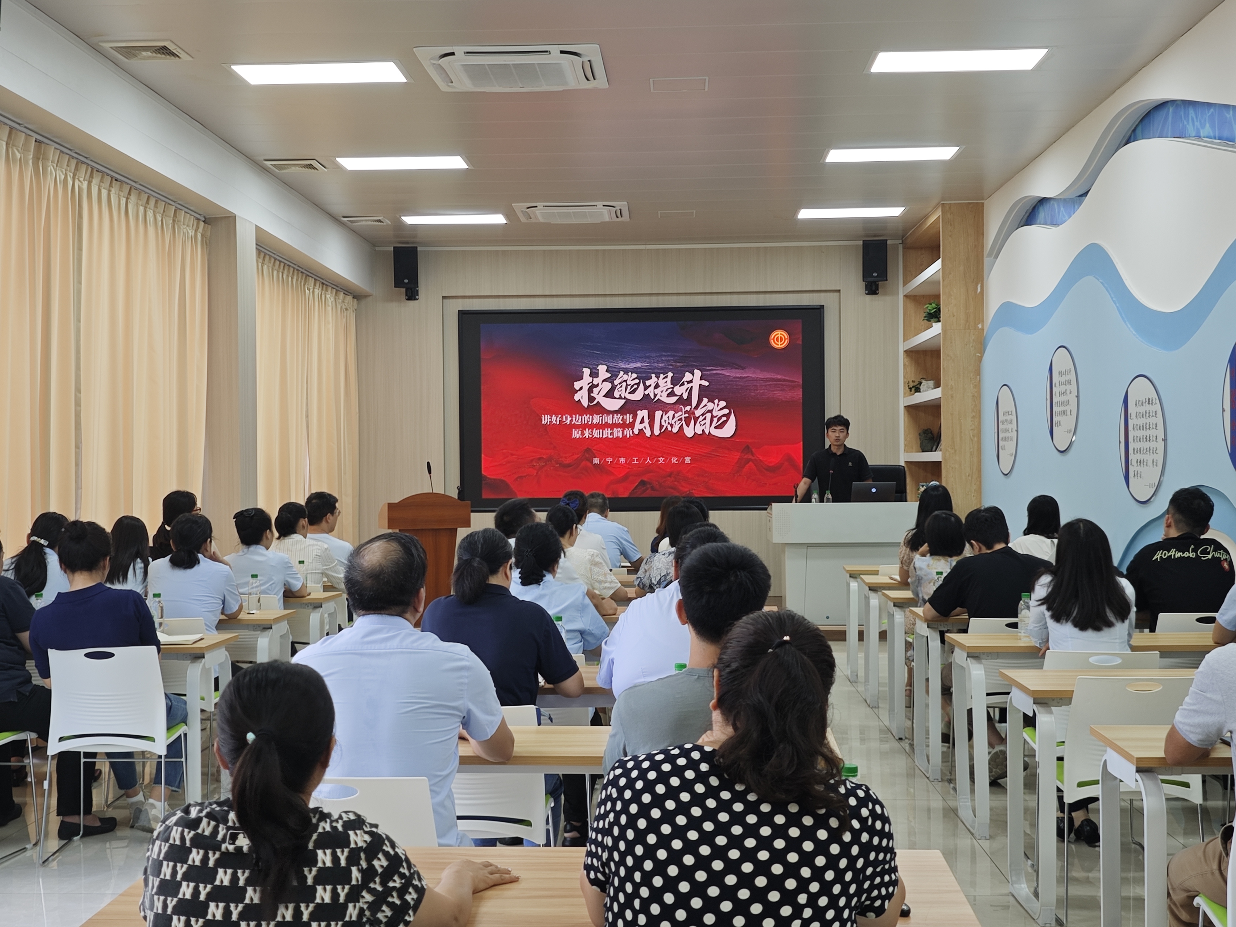為進(jìn)一步提升員工新聞寫作和手機(jī)攝影水平,提升公司整體綜合宣傳能力,8月27日下午,市排水公司工會(huì)聯(lián)合南寧市工人文化宮,在集團(tuán)公司新時(shí)代學(xué)習(xí)大講堂舉辦“新聞攝影及綜合宣傳”專題講座。公司各部門、分公司宣傳工作相關(guān)人員和攝影宣傳愛好者共50余人參加講座。